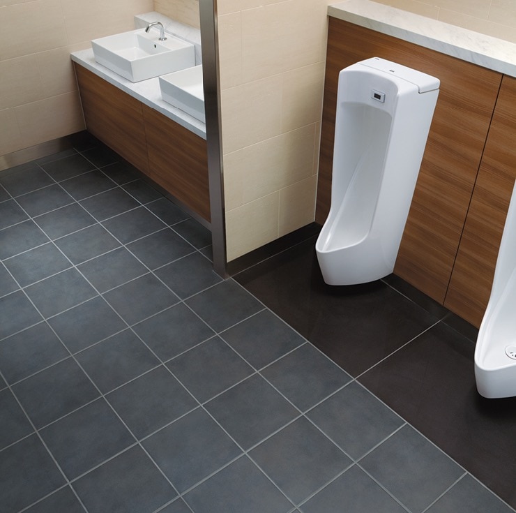 『レストールキラミック』は、ウエット清掃&ドライ清掃のどちらにも対応できるトイレ用抗菌床タイルです。菌の増殖を抑え、汚れやニオイの付着を防ぐ機能はもちろん、シンプルで使い勝手のよいデザインも魅力です。