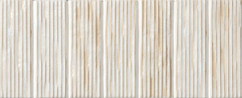 光を反射し、陰影が美しく空間を彩る3Dレリーフのロングボーダータイルです。ブライト仕上げがプリズムのような輝きを生み、角度で表情を変えます。壁面に華やかさと立体感をもたらします。白とブルー系の色合いがクリーンな印象を演出。店舗ファサードやホテルのレセプション、パウダールームなどに。