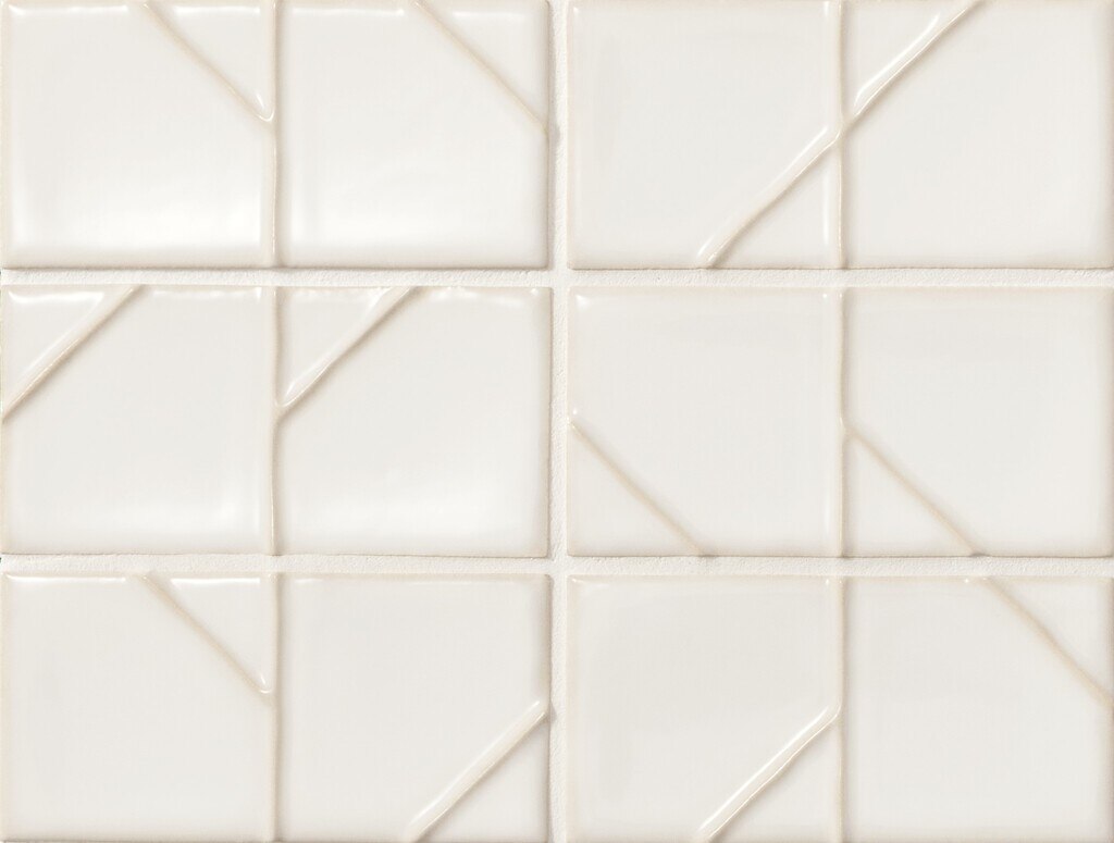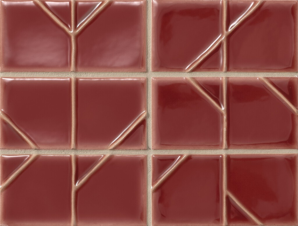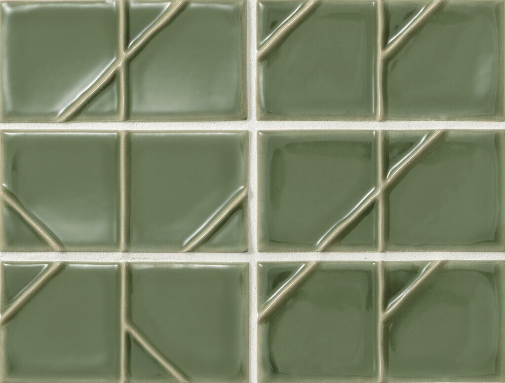 繊細な折り紙を思わせるレリーフが特長のタイルです。凹凸に沿って流れる釉薬が生む、 折り目のような淡い縁取りが、空間に静かで上品な華やかさを添えます。小ぶりなサイズ はアクセント使いにも最適で、和の店舗やホテル、自然素材とも美しく調和し、焼きものならではの深い味わいを感じさせます。